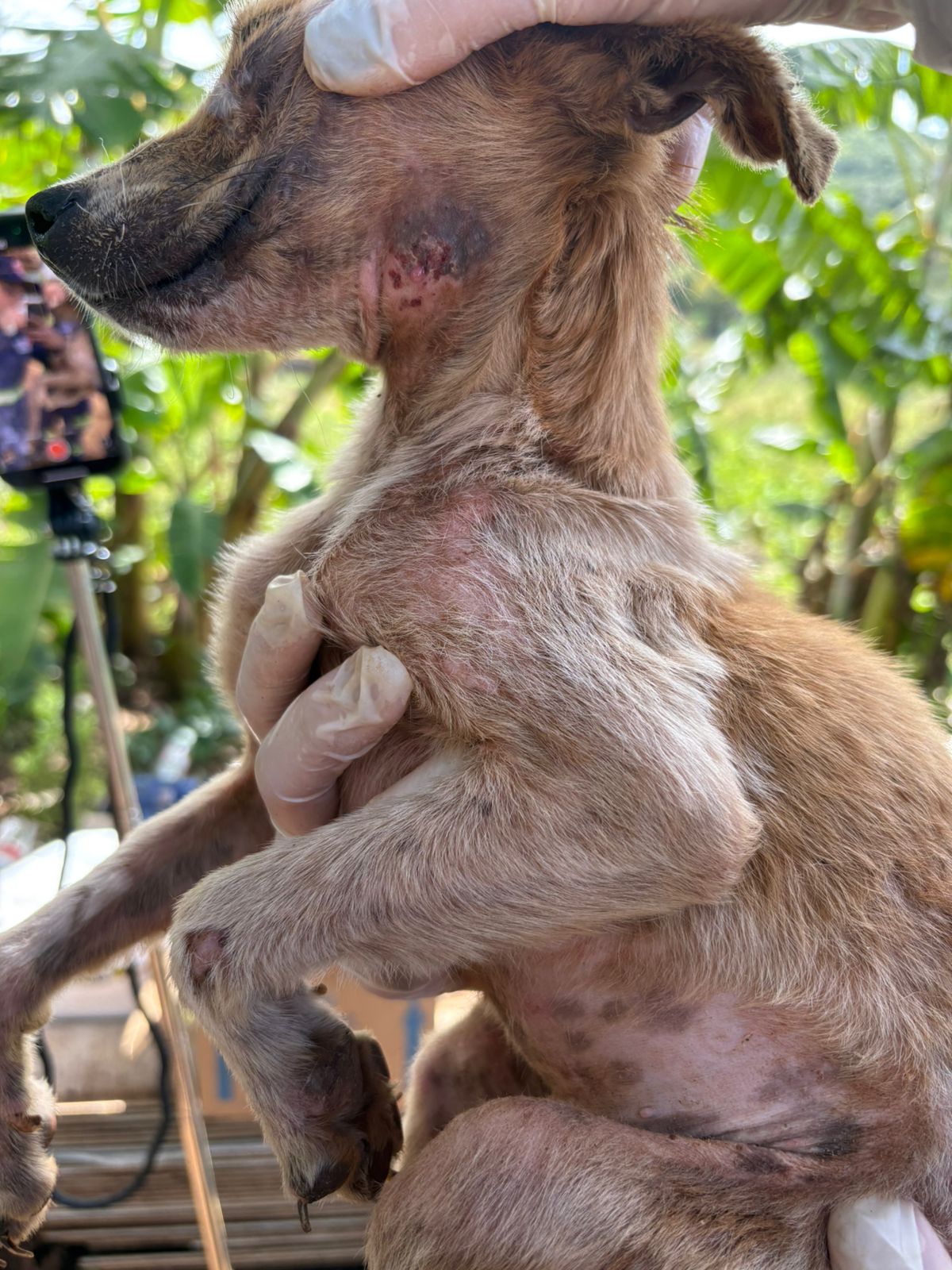 Foram implementados protocolos sanitários completos, com vacinação (V10 e antirrábica), vermifugação, desparasitação, coleta de sangue, fezes e pelos para análise, além de atendimentos clínicos individualizados. Animais com lesões cutâneas, alterações oculares, onicogrifose, nódulos sugestivos de neoplasia e quadros de desnutrição receberam tratamento adequado. Casos graves, como queimaduras, miíase e abscessos, também foram tratados.